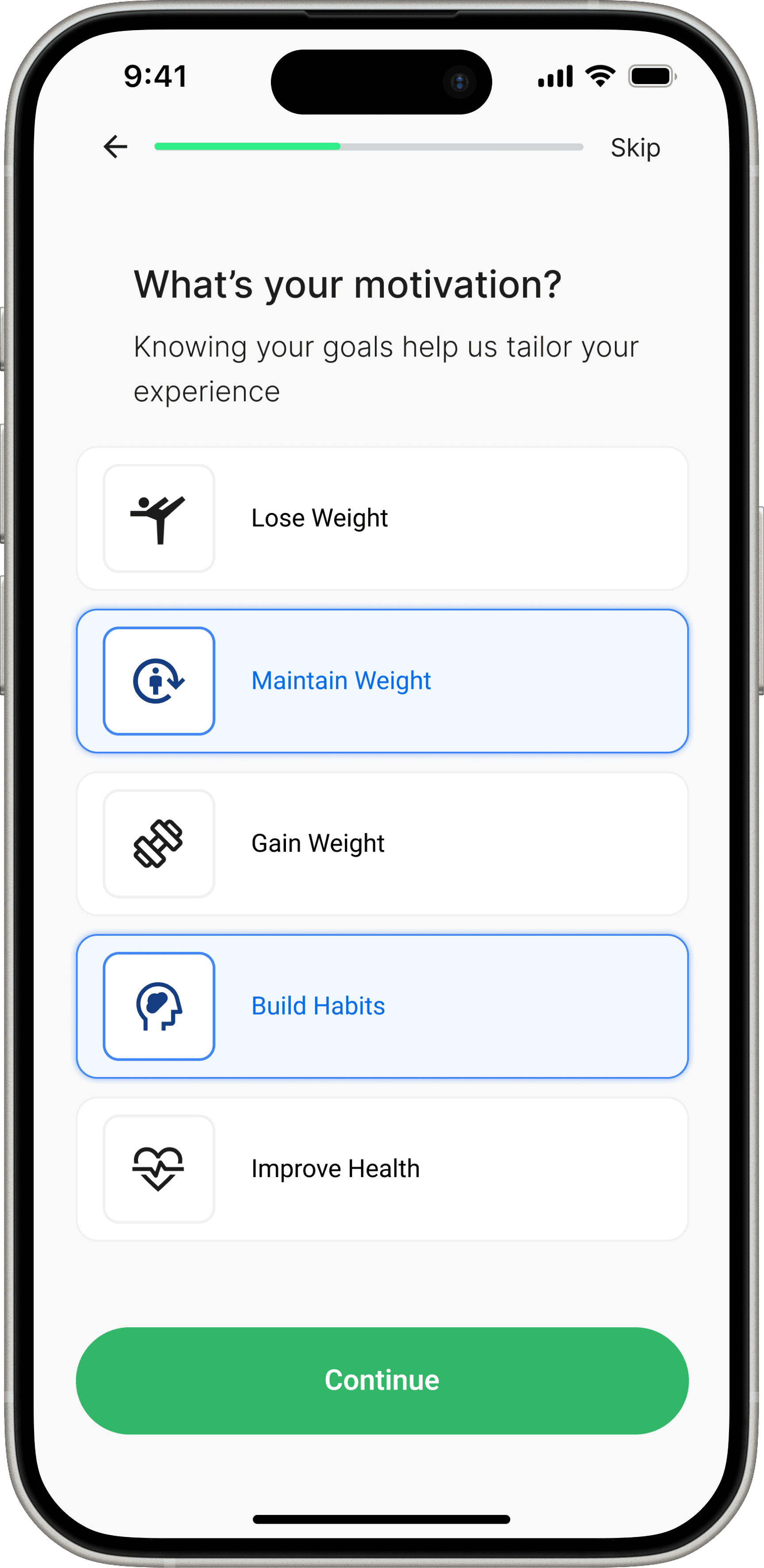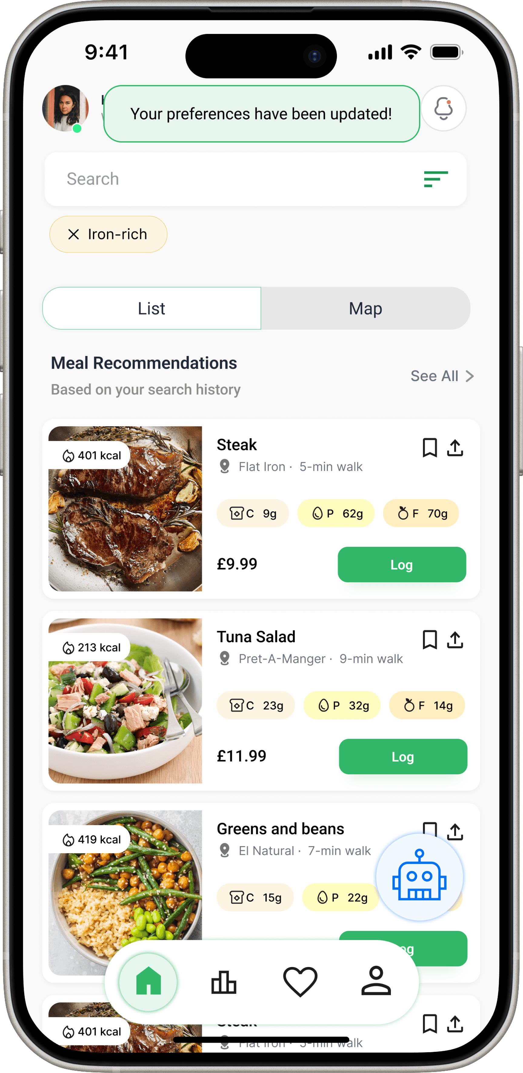 Supervised learning and Broad AI models are utilised to offer smart recommendations, personalised goals and habit-building features to assist users practice healthier eating.