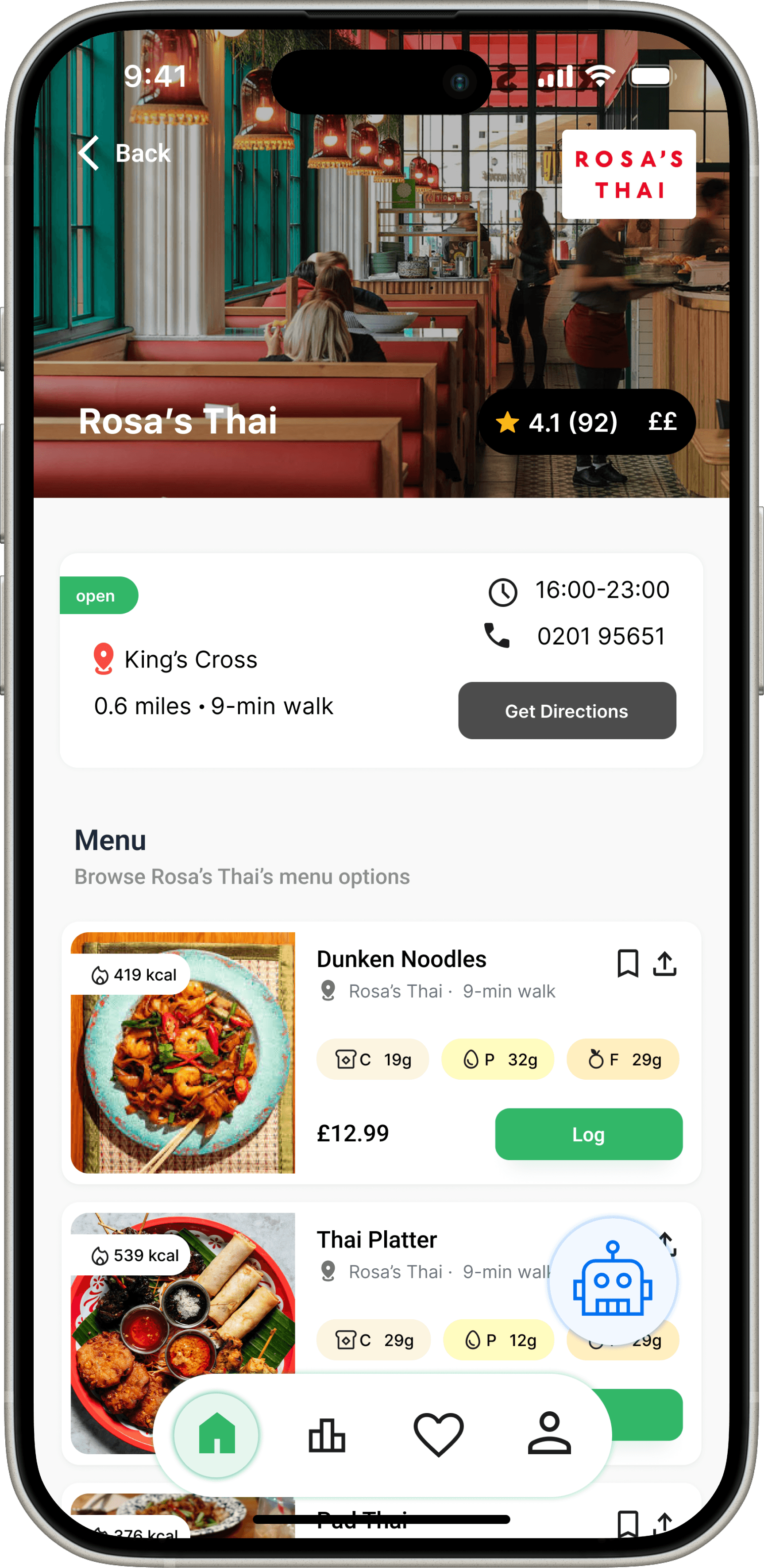 An AI-integrated mobile app that implements restaurant APIs to provide real-time calorie-accurate meal suggestions for users eating out in London.
