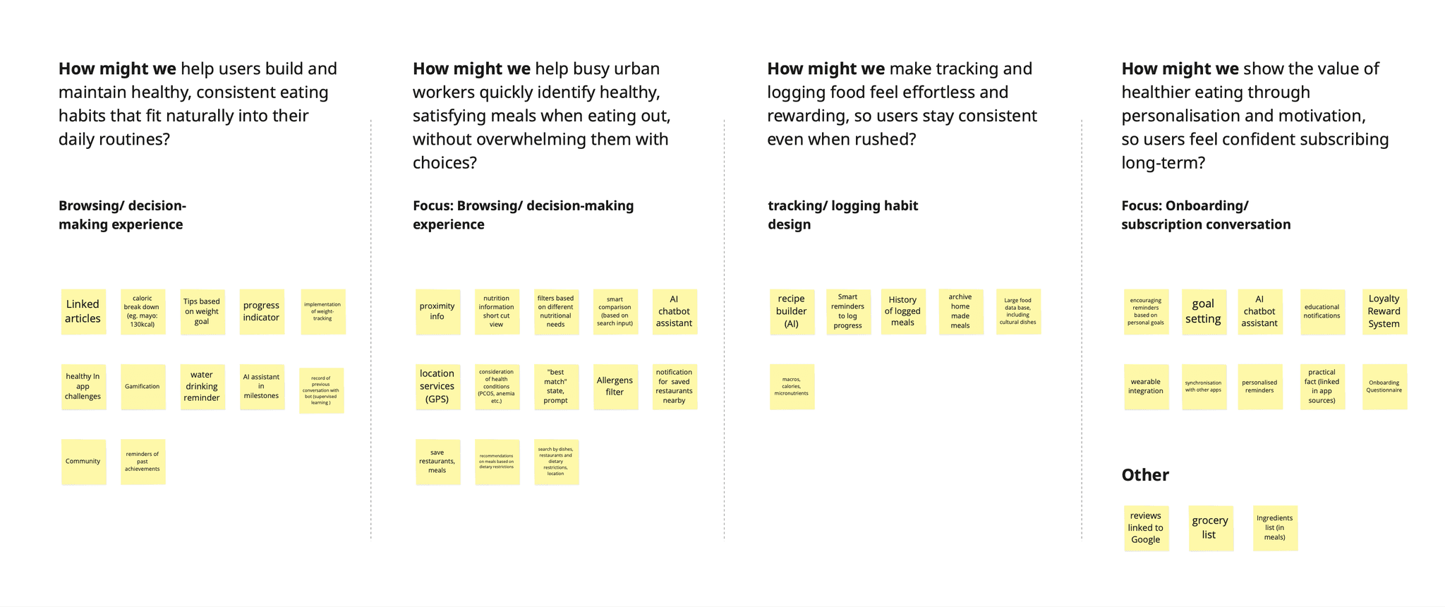 HMW statements were developed directly from user research insights to reframe problems into opportunities.
