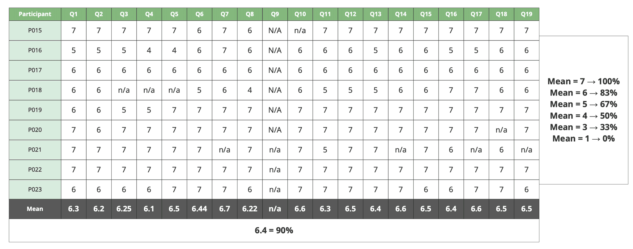 Usability testing measured task time, errors, and assists across key flows like onboarding, AI chat, and meal logging. After iterating based on initial findings and adding new features, the second test achieved an average CSUQ score of 6.4, confirming a 90% usability success rate and validating the project’s hypotheses.