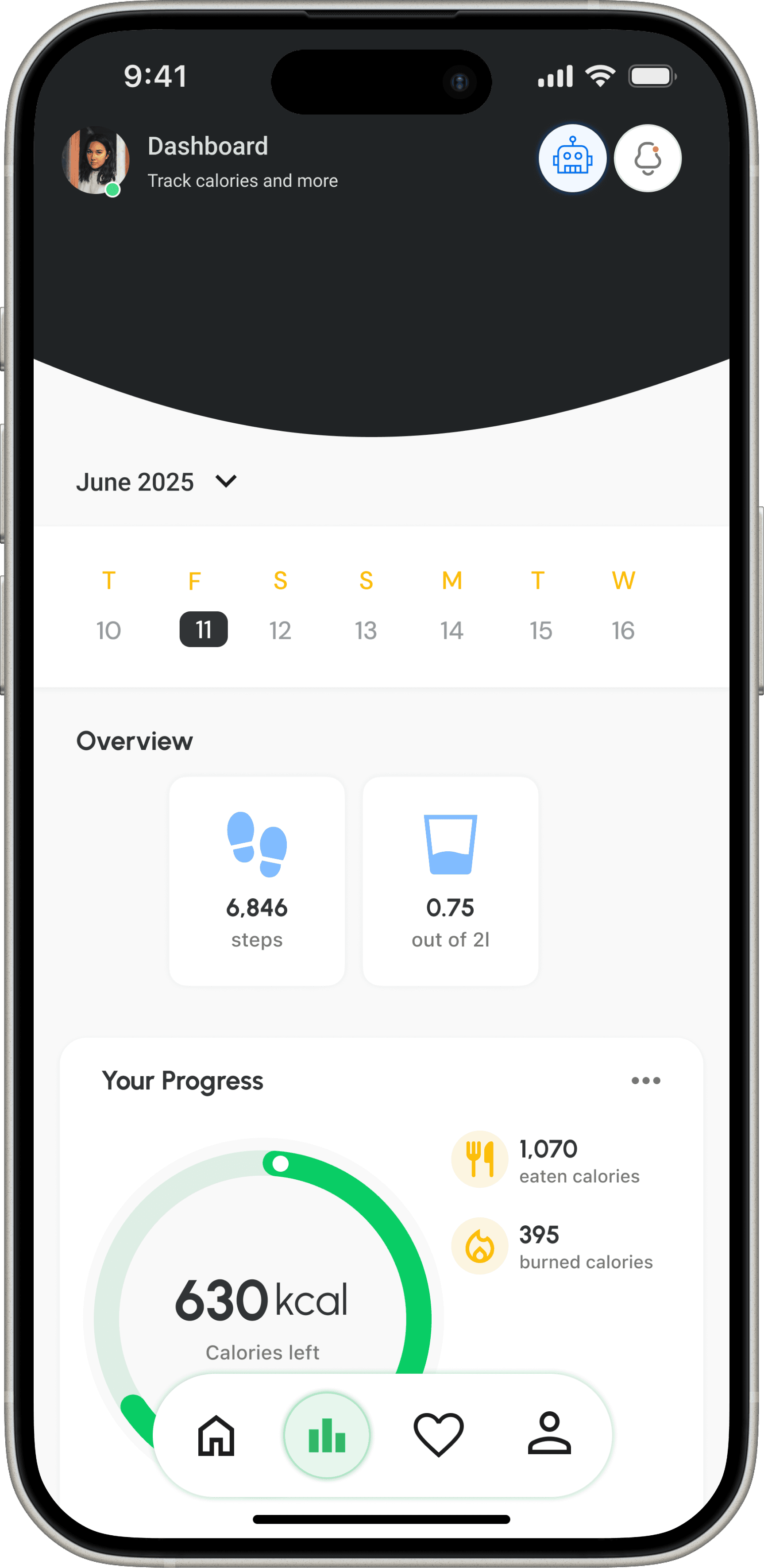conscious users who have issues tracking their calories can easily save their calorie intake with auto-tracking and progress indicators.